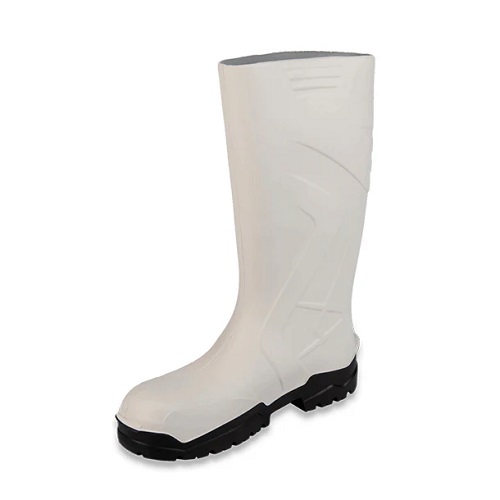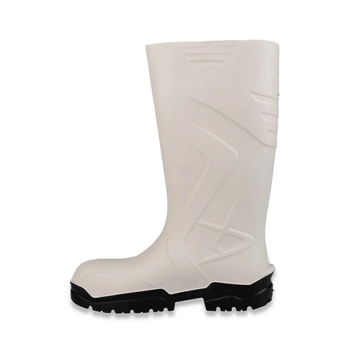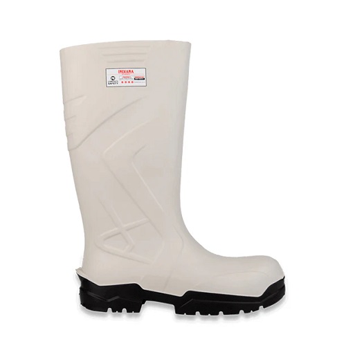 Bota Seguridad Indiana Blanco dieléctrica. Bota de trabajo para mitigar riesgos de impacto o compresión. Recomendada en labores industriales, agrícolas, industria de alimentos. Triple tiempo de duración comparada con un PVC
