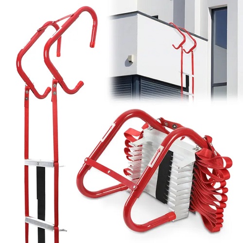 Escalera tipo cuerda para escape en caso de incendio de hasta 4,5 m de longitud Escalera de escape plegable de aluminio con ganchos Capacidad de carga 450 kg.