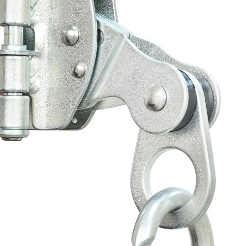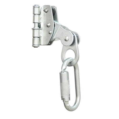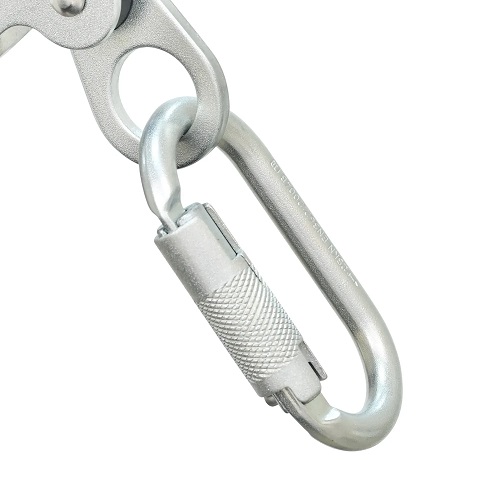 Freno cuerda de doble bloqueo con mosqueton de seguridad en acero forjado, para se utilizado como un elemento del sistema de detencion de caídas en cuerdas STEELPRO kernmantle para uso vertical o cuerda trenzada con diametro de 14-16 mm.